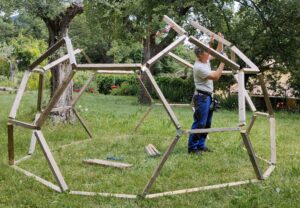 Preparing to build the geodesic dome